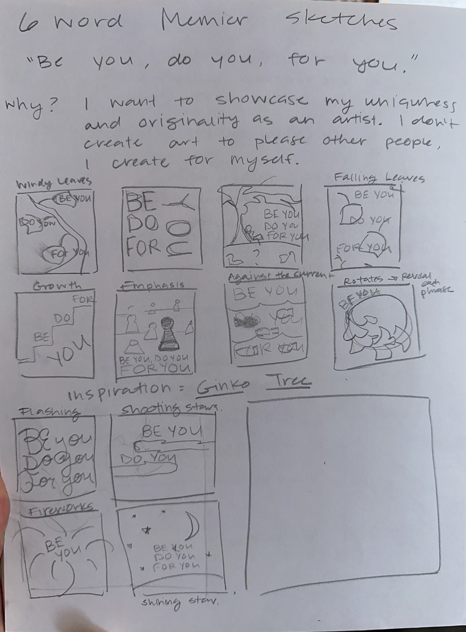 I chose these words because design is personal - I do it because I like to do it. "Be you, do, you, for you" is about staying true to myself and creating art driven solely by myself.